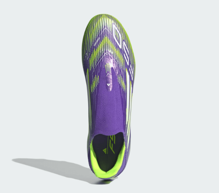 Find your fast to truly express yourself on the field. Feel the rush in adidas F50 boots engineered for speed. Standing out with an eye-catching Sprintgrid print, the Fiberskin upper on these League football boots employs an adaptive laceless collar for solid lockdown and clean striking. A lightweight Sprintplate outsole delivers serious pace on multiple surfaces.