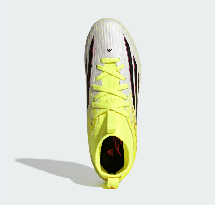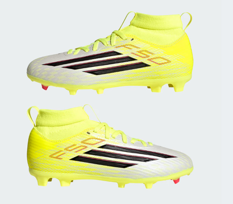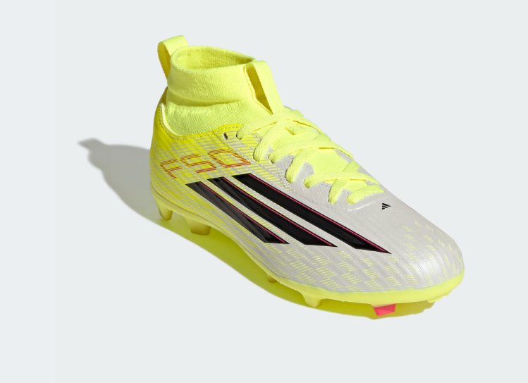 When young players hit the field, they deserve shoes that keep up with their energy and ambition. The F50 League Mid Cut Firm Ground / Multi-Ground boots are built to unlock game-changing speed, blending F50 heritage with modern innovation. The Fiberskin upper features 3D lines that enhance ball touch and visual appeal, while the Sprintgrid mudguard print brings a refined look inspired by top-tier models. Comfort takes center stage with a lightweight synthetic floating tongue that promotes airflow and a flexible fit. Underfoot, the Sprintplate 360 outsole combines bladed and semi-conical studs for multi-directional grip and quick acceleration.