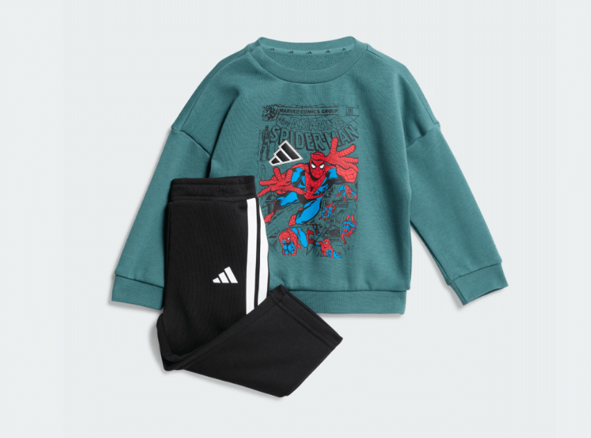 Dress your little one up for the day’s adventures in this adidas Marvel jogger and crewneck set for infants. The set includes a French terry crewneck top plus a pair of matching pants. It has a cool Spider-Man graphic on the front and iconic 3-Stripes along the legs.